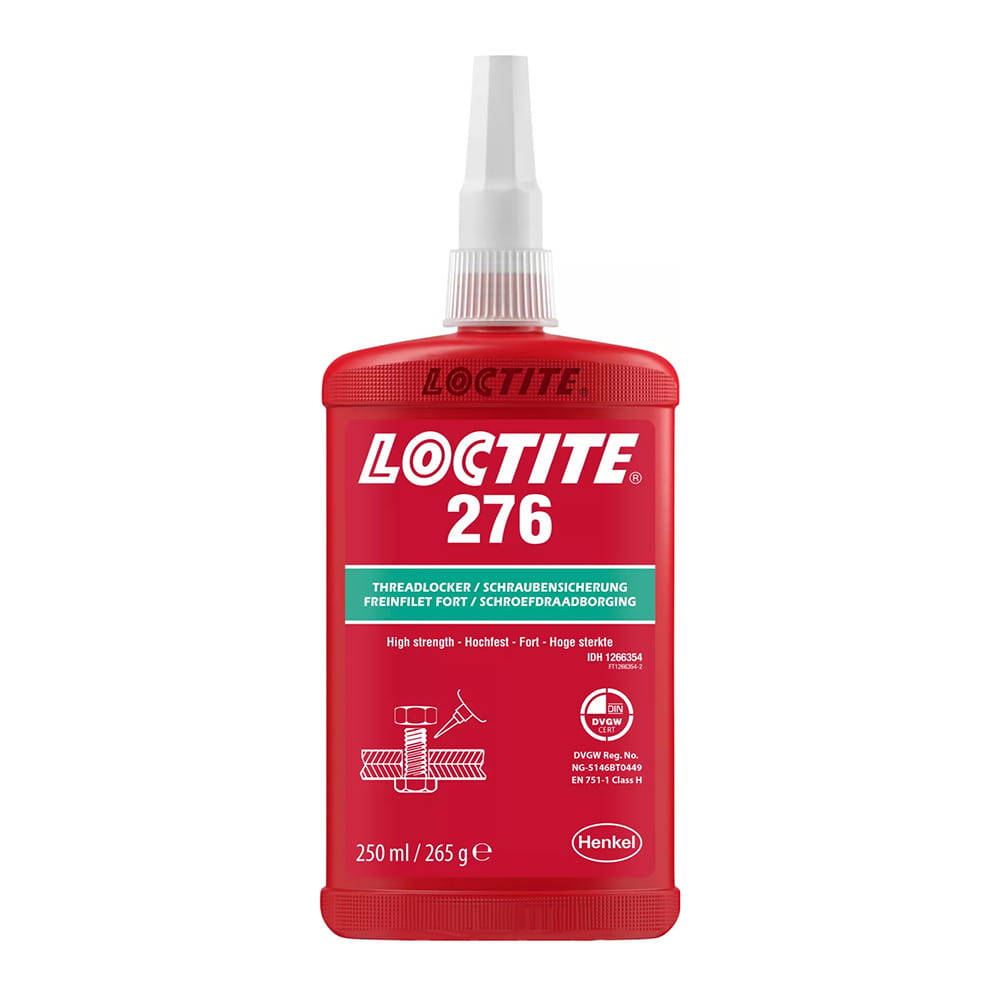 Loctite 276 to jednoskładnikowy klej anaerobowy oparty na metakrylanu, zaprojektowany do skutecznego zabezpieczania połączeń gwintowych. Po utwardzeniu tworzy wyjątkowo wytrzymałą spoinę, która zabezpiecza złącza, nakrętki i śruby przed luzowaniem, co jest spowodowane przez różne zjawiska fizyczne, takie jak drgania, wibracje, zmienne temperatury oraz korozja. Proces utwardzania zachodzi, gdy klej znajduje się między ściśle przylegającymi metalowymi powierzchniami, a jego czas zależy od rodzaju metalu, szczeliny w połączeniu oraz temperatury aplikacji.