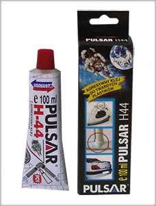 PULSAR H44 – agresywny klej do twardych plastików, bezbarwny i wodoodporny. Przeznaczony do klejenia takich tworzyw jak: ABS, PCV, PVDF, pleksi itp., do klejenia instalacji sanitarnych, wodnych, rynien, AGD itp. Spoina powstała przez nadtopienie powierzchni klejonych, posiada prawie taką wytrzymałość jak materiał rodzimy. Dlatego klejenie za pomocą kleju PULSAR H44 stosuje się w szczególnych przypadkach np. przy łączeniu rur wodociągowych.